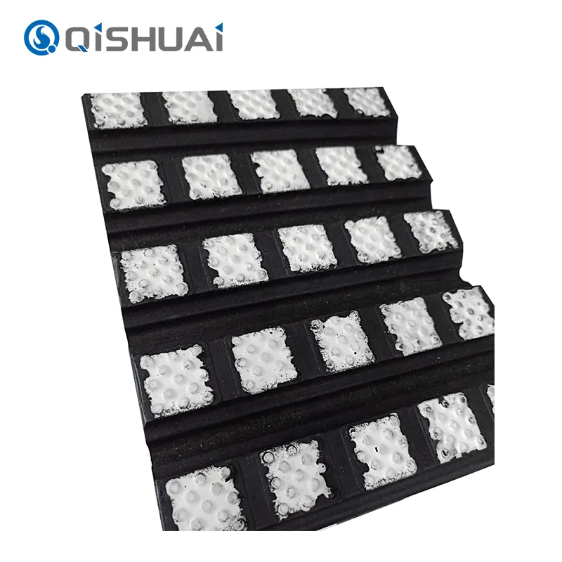 Feidhmíocht Frith-chreimeadh Superior Úsáideann táirge Shandong Qishuai maitrís rubair speisialta agus tá friotaíocht maith creimeadh aige. Sa tionscal ceimiceach, is minic a théann na hábhair a stóráiltear i dtrealamh i dteagmháil le meáin chreimneach láidir mar aigéad láidir agus alcaile láidir. Déanfar an gnáth-ábhar a chreimeadh agus a mhilleadh go luath, ach is féidir lenár Lagging Rubber Ceirmeach oibriú ar feadh i bhfad i dtimpeallacht chrua mheán creimneach láidir an trealaimh tríd an bhfoirmle speisialta agus an chóireáil phróisis. Tá timpeallacht tais ag mianaigh ghuail faoi thalamh agus tá go leor gáis chreimneach iontu, rud a chuireann bagairt mhór ar threalamh freisin. Tá dea-fheidhmíocht frith-chreimeadh ag ár dtáirge, rud a d'fhéadfadh an trealamh a chosaint ó chreimeadh agus a rith de ghnáth i dtimpeallacht dhian an mhianaigh ghuail agus ráthaíocht a thabhairt maidir le táirgeadh guail.