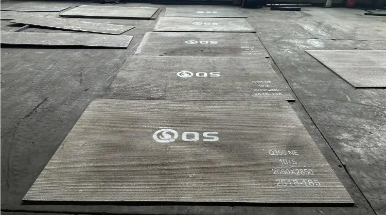 (3) Plátaí Forleagan Carbide Cróimiam: Is plátaí cóimhiotal-chomhdhúile cróimiam iad plátaí clad Shandong Qishuai go príomha. Ag baint úsáide as próiseas cumhdaigh, cuirtear sraith amháin nó níos mó de chóimhiotal caitheamh-resistant ina bhfuil tiúchan ard de cháithníní crua chomhdhúile cróimiam i bhfeidhm ar fhoshraith de phlátaí cruach meánach go dtí ísealcharbóin mar Q235. Agus cruas plátaí cruach á gcomhcheangal le friotaíocht caitheamh an chóimhiotail, is féidir na plátaí seo a ghearradh agus a tháthú go díreach, rud a fhágann go bhfuil siad oiriúnach do raon leathan cásanna suiteála casta.