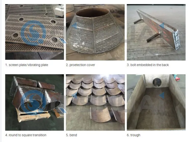 Is féidir plátaí forleagan caitheamh-resistant a shaincheapadh le tiús éagsúla, leibhéil chruas, agus comhdhéanamh cóimhiotail a shaincheapadh do choinníollacha oibríochta sonracha (m.sh., méid na gcáithníní ábhartha, cruas, uillinn tionchair, teocht), éifeachtúlacht costais a bharrfheabhsú. Seachadann ár gcuid táirgí comhoiriúnacht den scoth le haghaidh feidhmchláir ó dheisiúcháin forleagan leac i dtáirgeadh cruach agus líneálacha dríodair i bpróiseáil ghuail go cosaint do lanna tuirbíní i nginiúint cumhachta. Is féidir iad a ghearradh go toisí agus cruthanna beachta de réir riachtanais an chliaint, rud a éascaíonn suiteáil dhíreach ar an láthair.